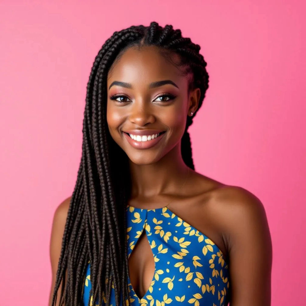 Knotless braids involves braiding natural hair with synthetic hair using a feed-in technique to create a more natural look and reduce scalp tension. This service includes the hair.